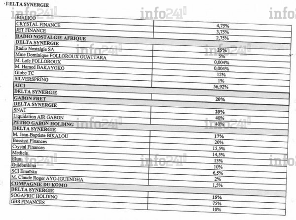 Selon Mediapart, « au moins quatre multinationales françaises présentes au Gabon – Bolloré, Bouygues, Eramet et la BNP – sont citées dans les documents en notre possession. Au total, ce sont 35 sociétés majeures de l’économie gabonaise au capital desquelles Delta Synergie est partie prenante, à des degrés divers. »