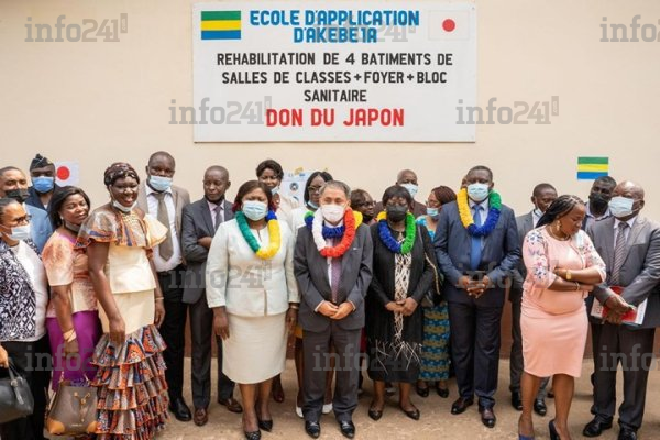 Encore un geste de générosité du Japon envers les écoliers du Gabon. Près d’un an après l’entame des travaux, ce sont 9 bâtiments de l’école d’application d’Akébé 1A, située dans le 3e arrondissement de la capitale gabonaise, qui ont été réhabilités grâce à la générosité de 51 millions de FCFA de la diplomatie nippone. La cérémonie solennelle a eu lieu ce jeudi en présence de l’ambassadeur du Japon au Gabon, Noguchi Shuji, de la gouverneure de l’Estuaire, des représentants du ministère de l’Education nationale de et de plusieurs responsables communaux.
