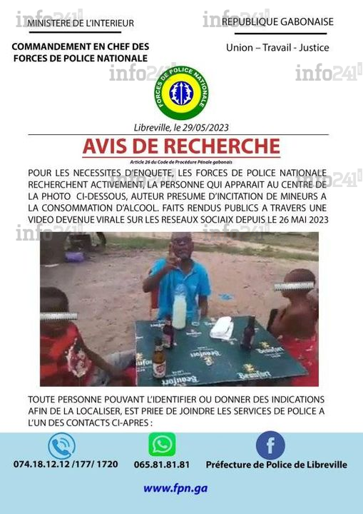 Après avoir lancé un avis de recherche le 29 mai, les forces de police nationale n’ont pas eu du mal à identifier le père de famille. Moins de 24h après cet appel à temoins, Jean Tallas Lambert Ndzangha a été arrêté à Moanda où il vit avec sa petite famille. Les deux victimes, son fils de 12 ans et sa fille de 10 ans ont ainsi consommé des boissons alcoolisées sous la supervision du père qui risque jusqu’à un an d’emprisonnement pour avoir enfreint le Code de l’enfant en République gabonaise.