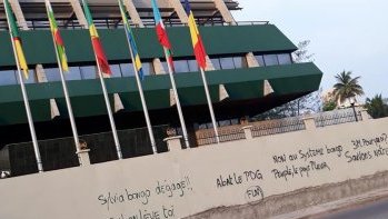 Des tags anti-Bongo ornent le siège de la BEAC à Port-Gentil