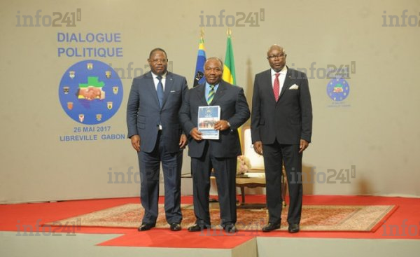 Ali Bongo posant fièrement avec les conclusions de son « dialogue »
