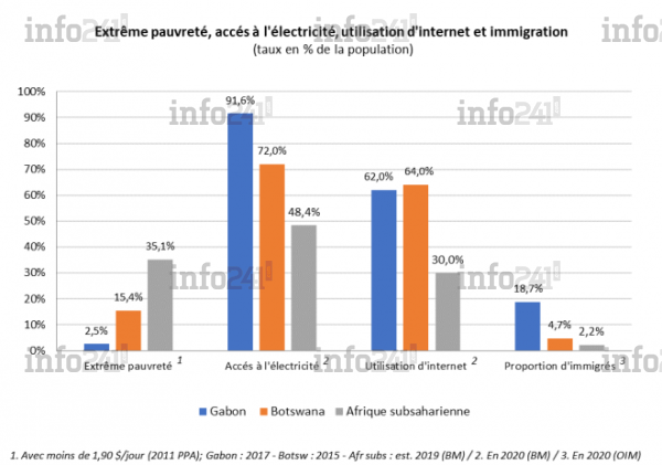Les grandes avancées réalisées en matière de diversification, de réformes et plus globalement en matière de bonne gouvernance, ont ainsi permis au pays de connaître d’importants progrès économiques et sociaux au cours de la dernière décennie. À titre d’exemple, et dans le domaine de la santé, le taux de mortalité infantile est passé au-dessous de celui du Botswana au cours de la dernière décennie, pour s’établir à 31 décès pour 1 000 naissances vivantes en 2020 (et 36 pour le Botswana). Ce taux est largement inférieur à la moyenne de l’Afrique subsaharienne (50 ‰), se rapproche de celui de l’Afrique du Sud (26 ‰), et est très éloigné de celui de pays comme le Nigeria (72 ‰, et quatrième taux le plus élevé du continent, selon la Banque mondiale). Par ailleurs, le pays se distingue sur la scène internationale en étant l’un des deux seuls pays du continent à disposer d’un laboratoire de type P4, avec l’Afrique du Sud (laboratoire habilité à manipuler les virus les plus dangereux de la planète, comme le virus Ebola). Toujours dans le registre de la santé, il est à noter que la Gabon se distingue également par son assez bonne maîtrise de la progression du VIH (ou Sida), avec un taux de prévalence de 3 % de la population âgée de 15 à 49 ans en 2021, contre 19 % au Botswana qui affiche le troisième taux le plus élevé au monde, juste devant l’Afrique du Sud.