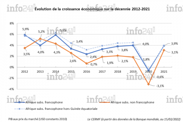 Les importants progrès réalisés par le Gabon ne sont pas un cas isolé en Afrique subsaharienne francophone, qui continue à être le moteur de la croissance africaine. En 2021, et bien qu’ayant déjà mieux résisté à la grave crise économique internationale de l’année précédente, liée à la pandémie, cet ensemble de 22 pays a globalement réalisé les meilleures performances économiques du continent pour la huitième année consécutive et la neuvième fois en dix ans, tout en en demeurant la partie la moins endettée. Sur la période 2012-2021, soit dix années, la croissance annuelle de cet ensemble s’est ainsi établie à 3,6 % en moyenne (4,1 % hors cas très particulier de la Guinée équatoriale, dont la production pétrolière a baissé presque aussi vite qu’elle n’avait augmenté au début des années 2000), contre 2,2 % pour le reste de l’Afrique subsaharienne.