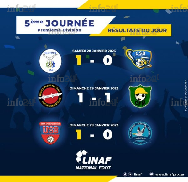 Un réaménagement des matchs qui s’explique par « la non reprise du trafic du train domestique de la SETRAG et aux préparatifs du match amical qui opposera les U23 du Gabon à leurs homologues d’Égypte », indiquait déjà le 25 janvier la Linafp. En levée de cette double journée de reprise, les militaires de Vautour Club sont venus à bout du CS Bendjé de Port-Gentil samedi au stade Monedan de Libreville sur la petite marque d’un but à 0.