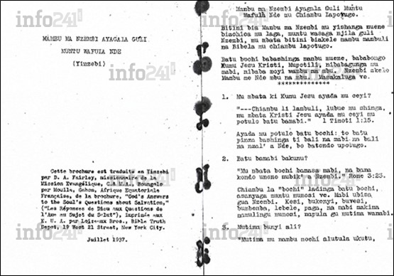 Fig.2 : Brochure en langue Ynzébi, 1937 (Donald Fairley)