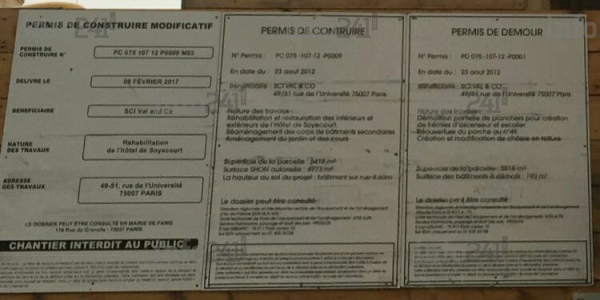 Comme si cela ne suffisait pas, grâce aux images prises au Pozzo di Borgo, sur l’affichage des travaux, un nouvel acteur apparaît comme le bénéficiaire des travaux du chantier. Son nom dont il n’avait pas été question jusque-là : SCI Val and Co.