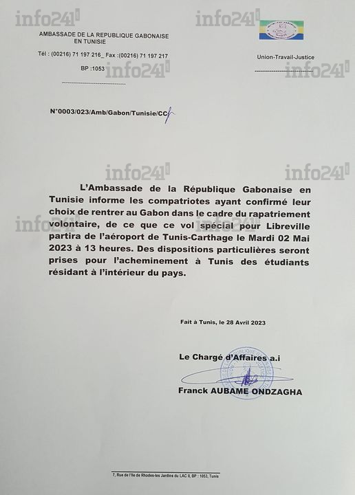 La Tunisie c’est fini pour plusieurs gabonais. Face à la montée du racisme entretenu au sommet de l’Etat de ce pays par le président, l’ambassade du Gabon en Tunisie a mis en place un appel au retour volontaire au Gabon. Un appel saisi par une cinquantaine d’étudiants qui ont regagné Libreville ce mercredi au petit matin à 2h à bord d’un vol Royal Maroc qui a duré 13h au lieu des 7h prévues.